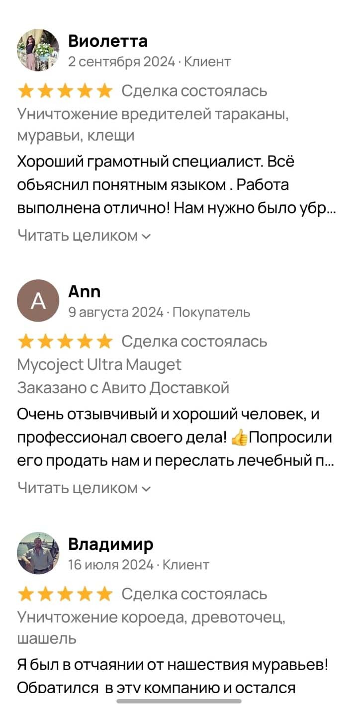 Используем проверенные и высококачественные препараты, поэтому не боимся гарантировать качество обработки.